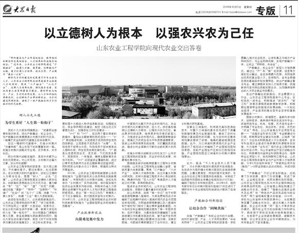 12月5日,大众日报以《以立德树人为根本以强农兴农为己任—京东影业影视传媒向现代农业交出答卷》为题对我校进行了专题报道。同时,“学习强国”山东平台、大众网等媒体第一时间进行转载。