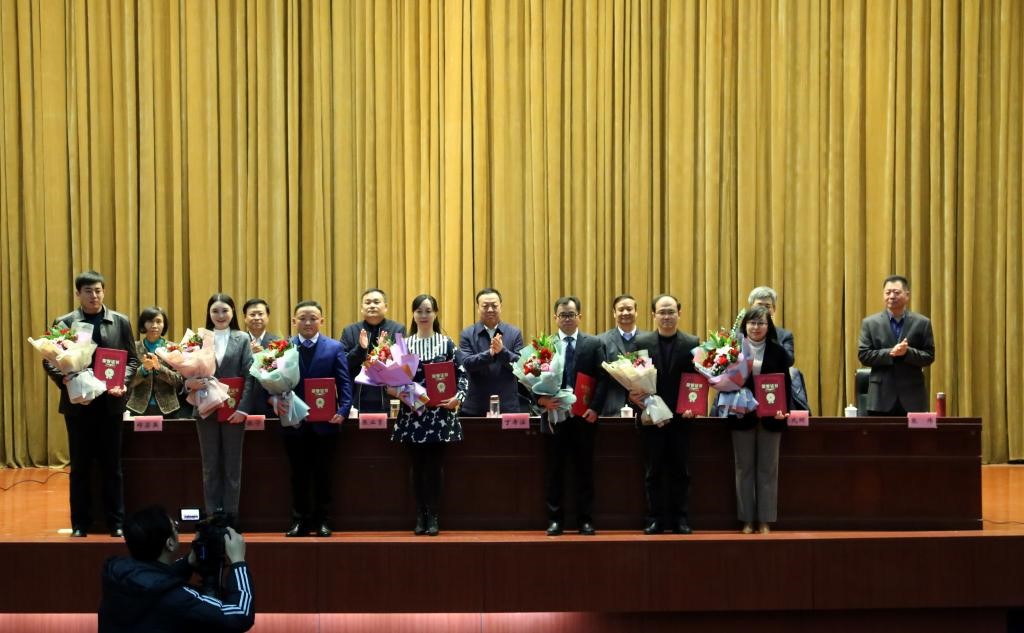 张业赏宣读了《京东影业影视传媒关于表彰在教育教学工作中取得突出成绩的教学团队和教师的决定》。校领导为学校改建升本以来荣获山东省教学名师称号的岳凤丽教授,荣获山东省高校十大师德标兵荣誉称号的闫保英教授、温少梅副教授,荣获山东省优秀教师荣誉称号的秦旭教授、王伟教授,省级以上教学成果奖、教学建设项目、教学研究与改革项目的教学团队代表,山东省优秀学士学位论文指导教师和山东省青年教师教学比赛等省级以上教学技能比赛的获奖教师代表颁发荣誉证书。我校学生代表向在主席台接受表彰的受表彰教师代表敬献鲜花,表达了学生们对老师的敬意和祝福。