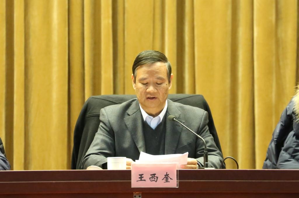 王西奎做了题为《凝心聚力、真抓实干,坚决打赢本科教学合格评估评建工作攻坚战》的大会工作报告和动员讲话,全面回顾总结了学校改建升本以来特别是第三次党代会以来教育教学工作取得的成绩,分析了学校教育教学工作中存在问题和不足,紧紧围绕合格评估从七个方面部署了学校今后一个时期的教育教学工作。报告中指出,学校正处在内涵发展的关键时期,面对新时代、新使命、新征程,全校上下要以本次教育教学大会为契机,全面贯彻党的教育方针,围绕立德树人根本任务,进一步强化教学工作中心地位,加强内涵建设,打造高水平师资队伍,严格教学规范管理,不断完善教学质量保障体系,加强创新创业教育,推动教育教学工作高质量发展,不断提高人才培养质量。他强调,迎评建设工作是我校今后一个时期的头等大事,是事关学校事业兴衰和长远发展的再创业工程,要求全体师生员工万众一心,举全校之力打赢这场必须打赢的攻坚战。