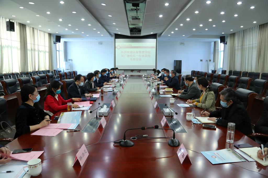 4月29日上午,山东管理学院党委副书记、校长邹广德一行13人来我校考察交流本科教学合格评估等工作。校党委书记丁希滨,党委副书记、校长王西奎等校领导会见来宾,并进行友好座谈。