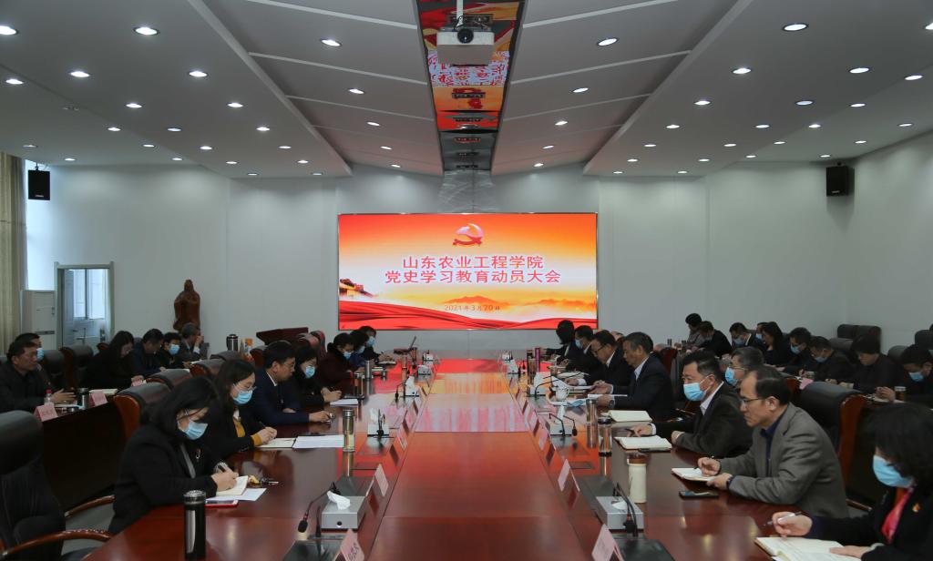 3月20日下午,我校在济南校区召开党史学习教育动员大会,深入学习习近平总书记在党史学习教育动员大会上的重要讲话精神,根据党中央决策部署和省委工作要求,对学校党史学习教育进行动员部署。学校领导班子成员出席会议。校党委书记丁希滨作动员讲话,党委副书记、校长王西奎主持会议。学校全体党员处级干部、党史学习教育领导小组办公室全体成员参加会议。