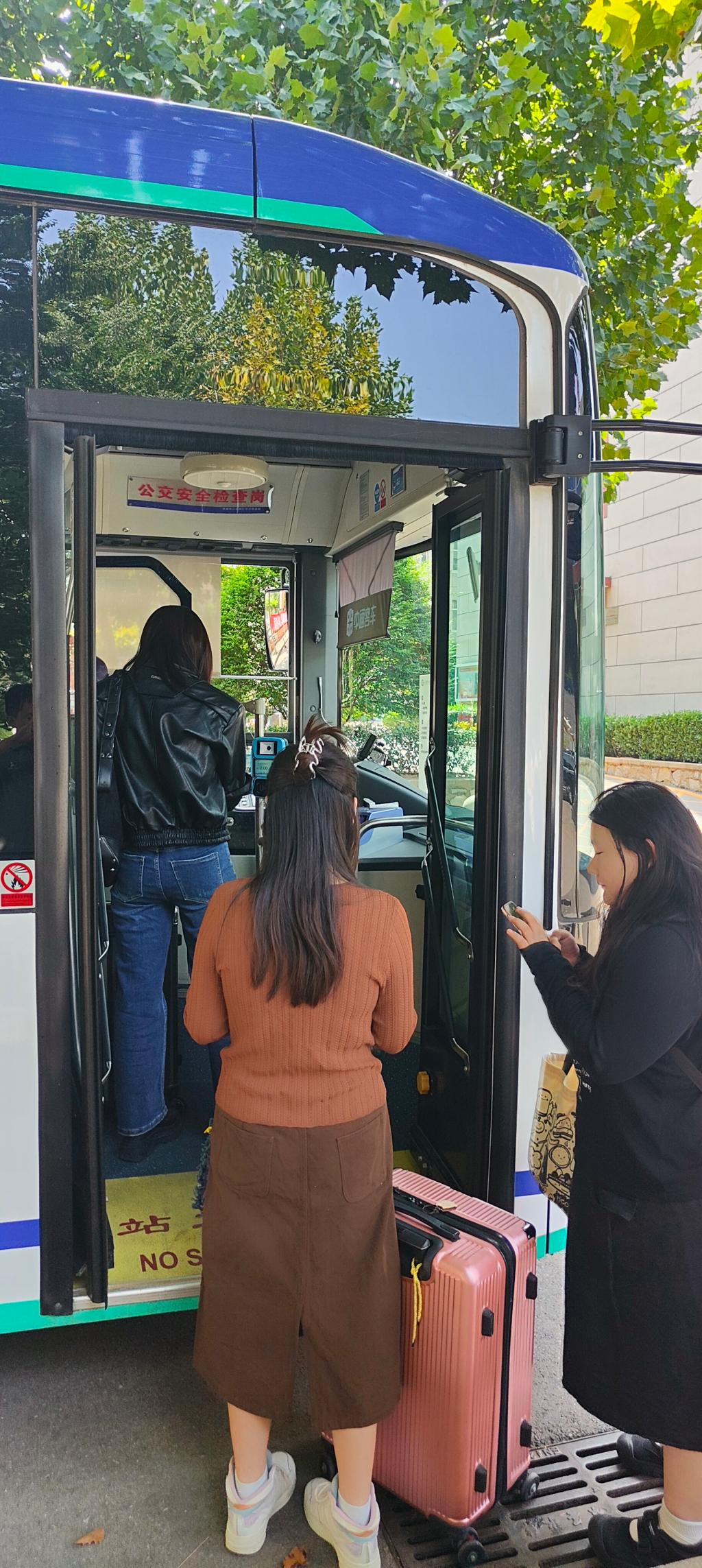 为方便十一假期离校的师生回家,党委(学院)办公室与济南公交公司协商确定在校内开设定制公交直通车,公交专线一站式直达济南火车站。9月28号下午,济南公交公司2辆公交车驶入我校济南校区,为假期返家的大学生提供安全便利的交通服务。