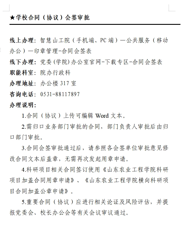 学校合同(协议)会签审批流程