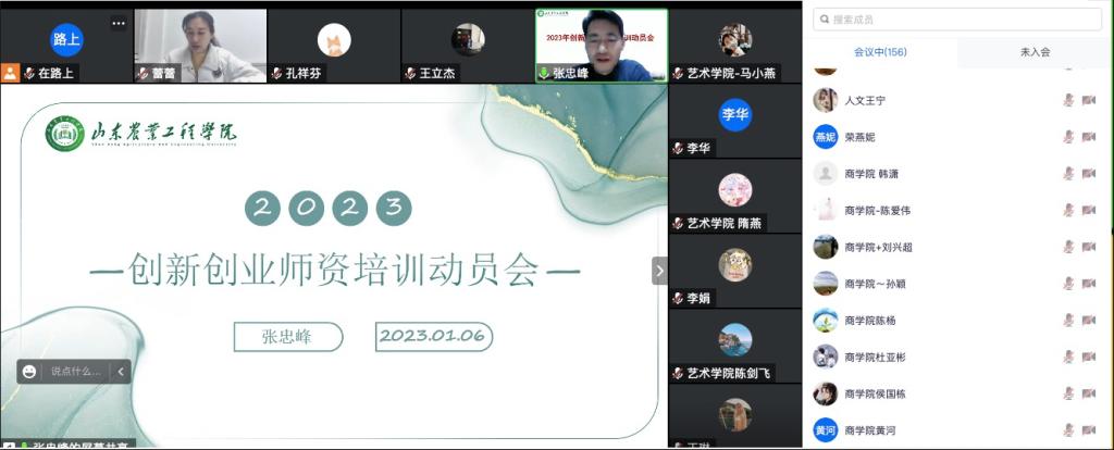 为进一步提升我校教师创新创业实践教学水平,教研与指导能力,1月6日,创新创业学院开展以“聚力师资培训,赋能双创教育”为主题的创新创业师资培训动员会。共有来自全校11个二级学院、职能部门、教辅单位等170余名教师参加,创新创业学院院长张忠峰做动员讲话。会议由创新创业学院副院长朱蕾蕾主持。