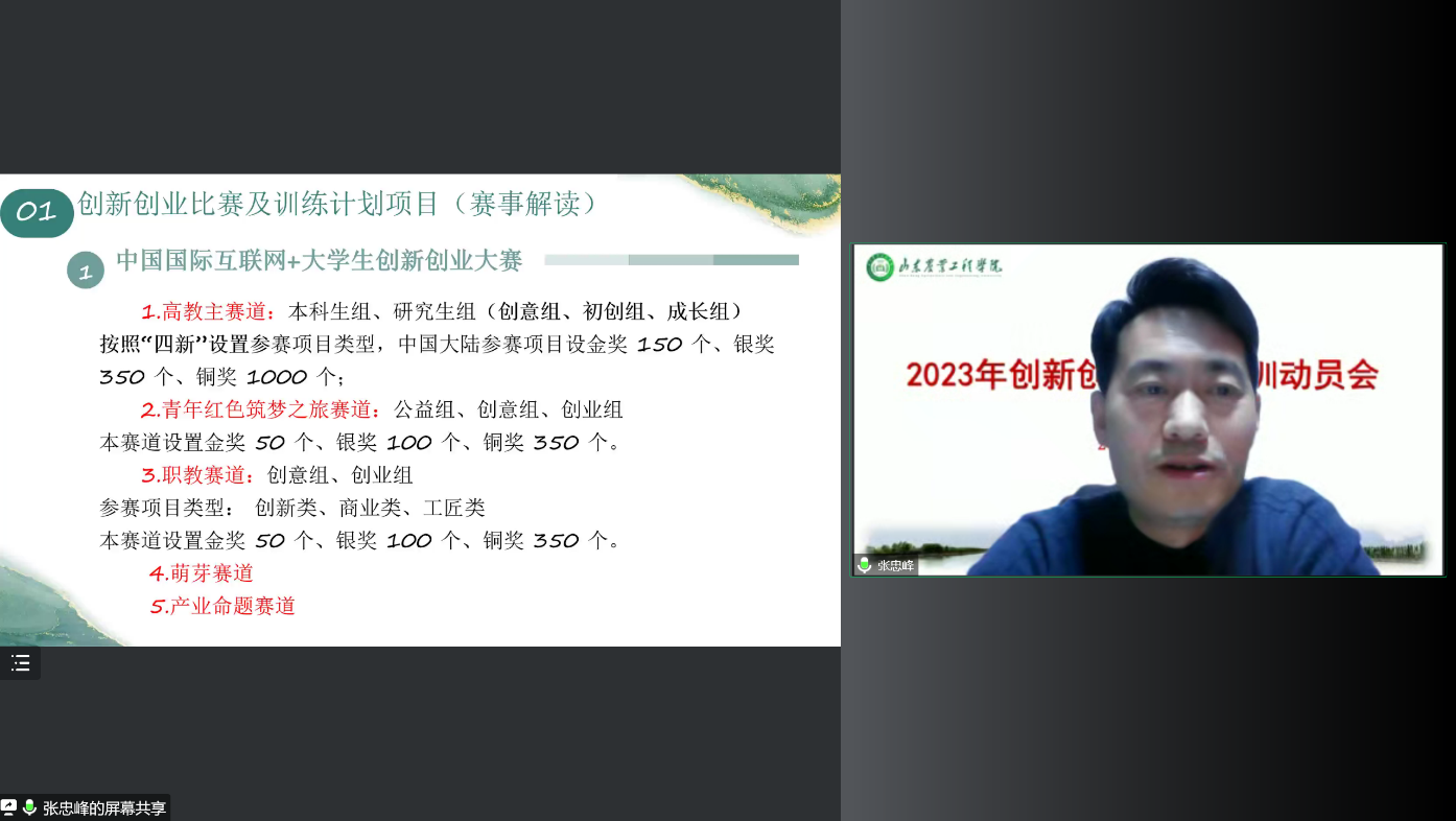 最后,创新创业学院院长张忠峰做动员讲话,并从评委视角解读了如何备赛等工作要点。