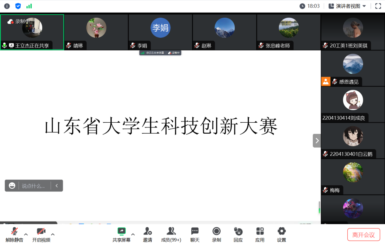 9月21日,为扎实做好第十届山东省大学生科技创新大赛准备工作,助力参赛团队把握好大赛要领等内容,我院召开第十届山东省大学生科技创新大赛线上辅导会。会议由创新创业学院院长张忠峰教授致辞,邀请山东科苑创业服务有限公司创始人、董事长王立杰、京东影业影视传媒优秀大赛指导老师张大鹏博士做专题报告,来自全校师生共300余人共同参加了辅导会。会议由创新创业学院副院长李娟主持。