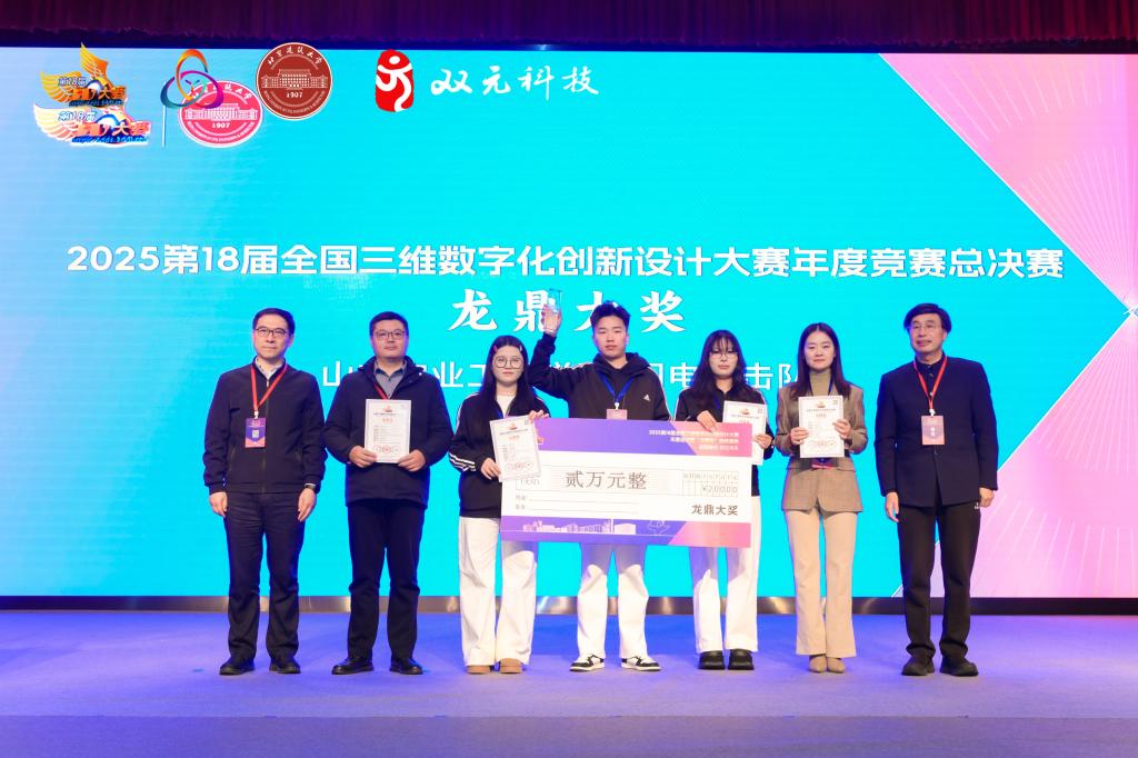 近日,第18届全国三维数字化创新设计大赛年度总决赛颁奖典礼在北京举行。在这场聚焦“数智融合 创见未来”为主题的科技盛宴中,我校艺术学院学生团队凭借“木创新韵”项目,从全国600余所高校的数千支参赛队伍中脱颖而出,荣获大赛最高荣誉“龙鼎大奖”,成为全国唯一获此殊荣的团队。