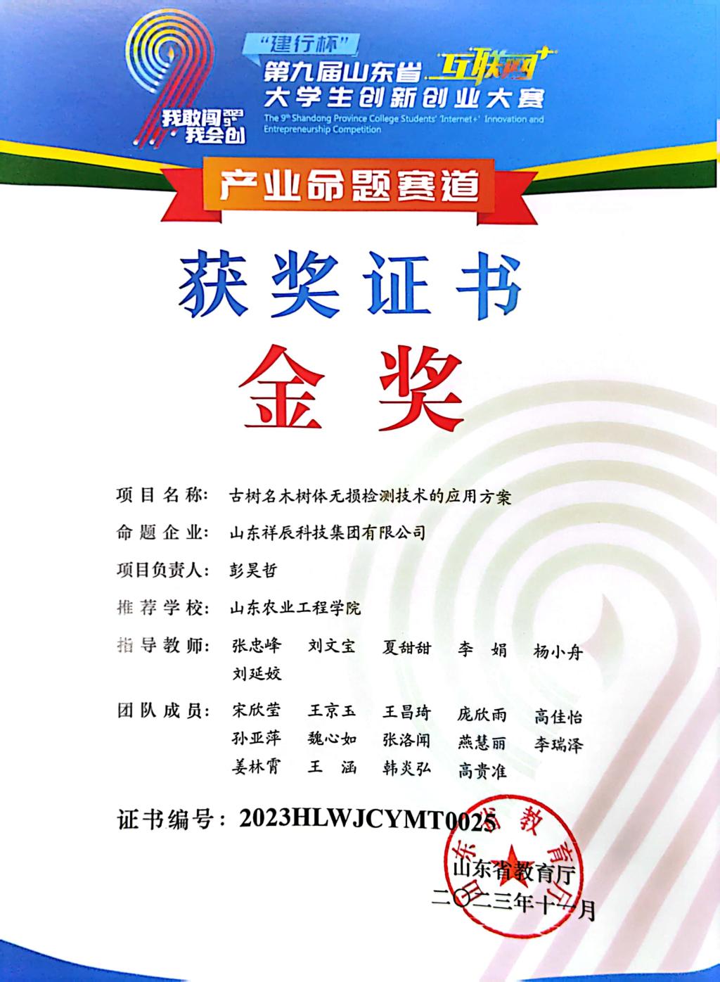“建行杯”第九届山东省“互联网+”大学生创新创业大赛金奖项目:古树名木树体无损检测技术的应用方案