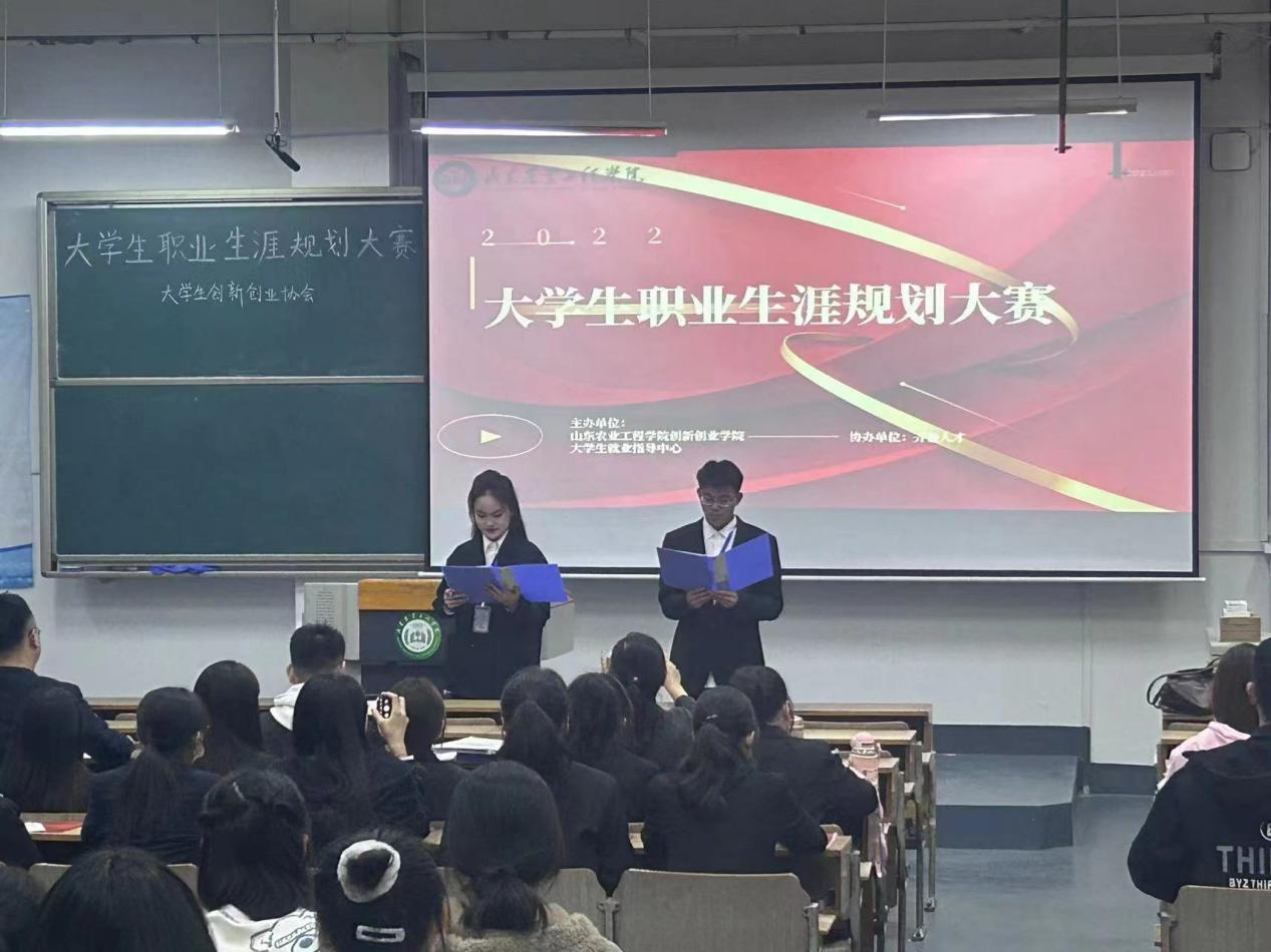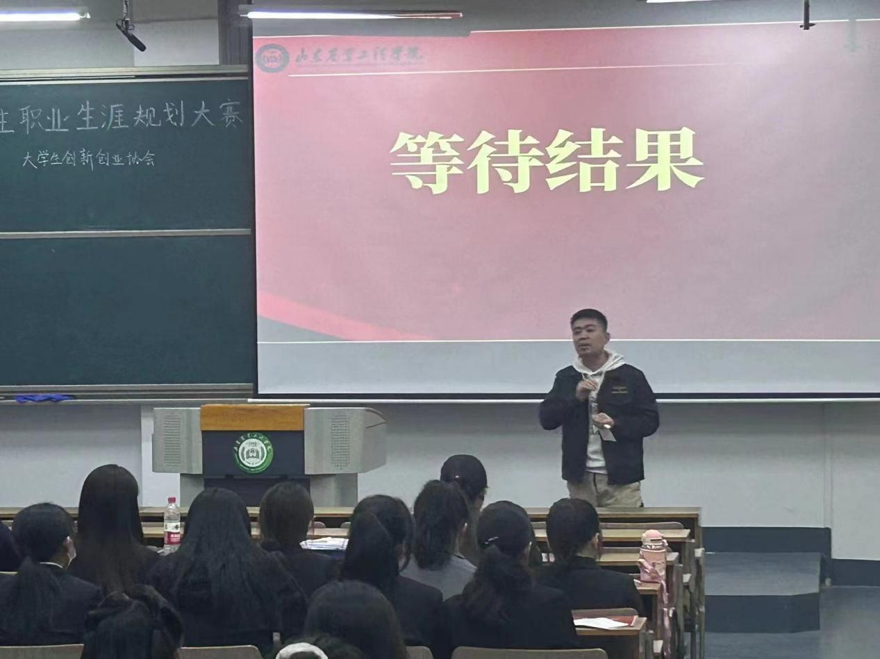 11月17日,为帮助我校学生明确学习目标,促进学生树立职业意识,从观念、心态、技能等方面做好应对竞争压力和职业挑战的准备,更好的适应社会对人才的需求,由大学生就业指导中心、创新创业学院举办的第十一届大学生职业生涯规划大赛在济南校区1教501举行。大赛由创新创业学院主任赵琳老师、齐鲁人才研究院主任、大学生职业规划导师刘建糁老师,大学生就业指导中心副主任陆昊老师三位老师担任评委。会长赵欣茹、副会长徐聪慧、秘书处、组织部、宣传部的部长、副部长、大学生职业生涯规划大赛16名参赛选手,以及30名观众参加了活动。