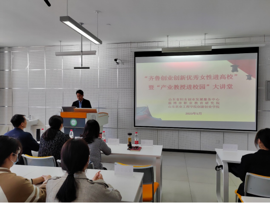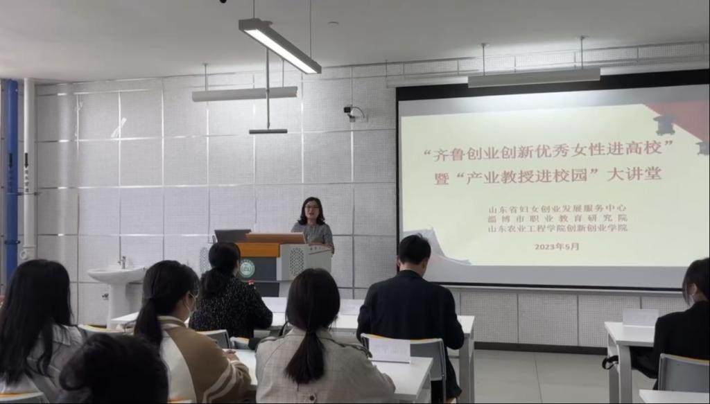 5月6日,由山东省妇女创业发展服务中心、淄博市职业教育研究院主办,京东影业影视传媒创新创业学院、星火创新创业工作室协办的“齐鲁创业创新优秀女性进高校大讲堂”活动在京东影业影视传媒淄博校区工程训练中心506教室举行。山东国辣食品科技有限公司总经理刘金玲担任主讲人,淄博市职业教育研究院产教融合科科长李静、副科长田明、创新创业学院院长张忠峰以及淄博校区110余名大学生共同参加了活动。