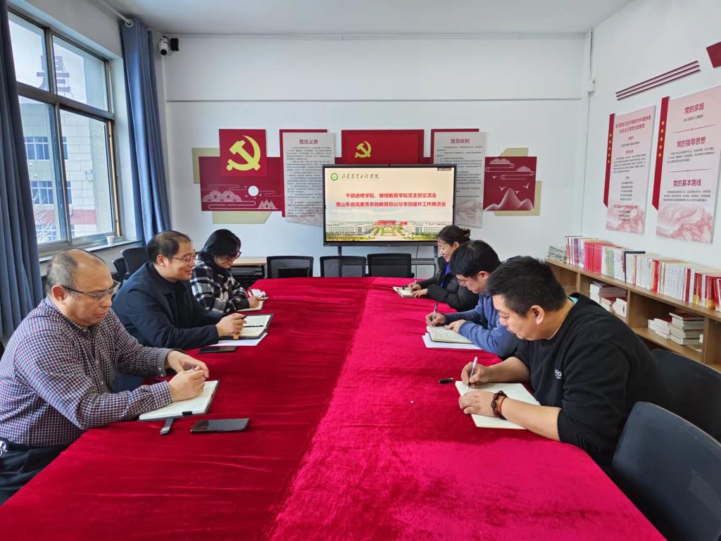 2023年12月15日,干部进修学院党支部与继续教育学院党支部在济南校区机关党委活动室召开党支部交流会暨高素质农民教育培训与学历提升工作推进会。