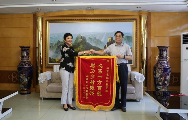 培训班结束后,历城区人大常委会副主任李云爱一行三人专程来我校致谢,并赠送锦旗。校党委书记李允祥代表学校会见来访客人并进行了座谈,双方就进一步加强校地合作,共同致力乡村振兴等交换了意见。