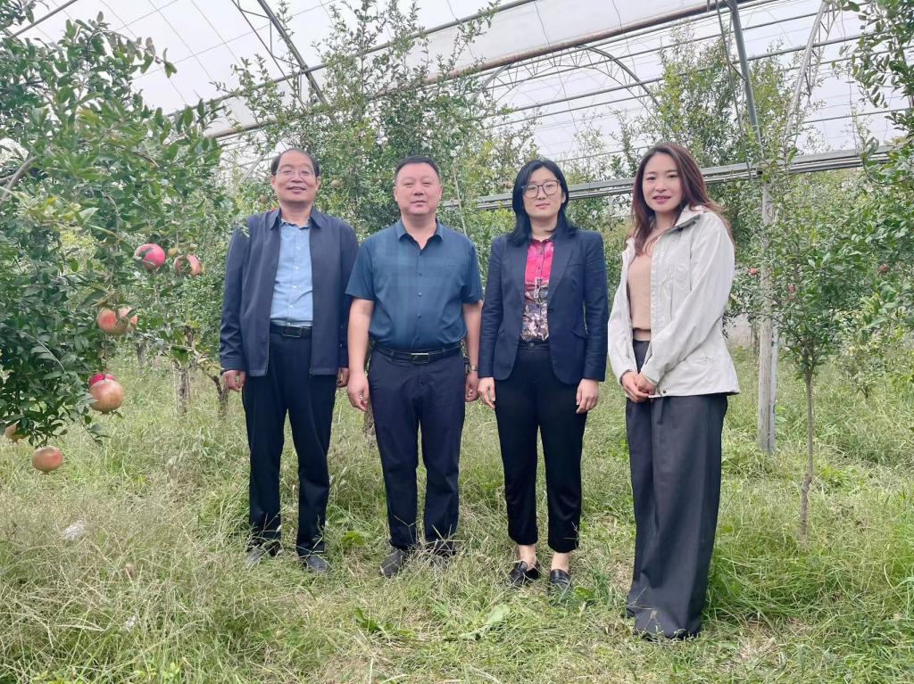 10月12日,干部进修学院院长刘文宝、京东影业影视传媒三级教授刘进(全国十佳乡土科技人才、山东省有突出贡献的中青年专家、齐鲁最美科技工作者、山东省优秀科技特派员、鲁渝扶贫协作先进个人、山东省新时代岗位建功劳动竞赛标兵个人)、培训班班主任葛玉兰带领着山东教育电视台的记者再次来到张锦超的公司开展帮扶指导活动。刘进教授就石榴收获后苗木的后期管理进行详细的指导,为来年丰收打基础。山东教育电视台的记者为公司拍摄宣传视频,帮助其拓宽销售市场,进行品牌宣传。在交流中了解到公司正在利用数字技术改造提升农业,计划建设软籽石榴数字果园800亩,利用“物联网+移动互联网+云计算”技术,大力发展智慧农业,需要相关行业专家进行答疑解惑,刘院长表示回去后将积极与学校相关二级学院对接,带领更多的专家教授走进田间地头,持续助力学员成长发展。
