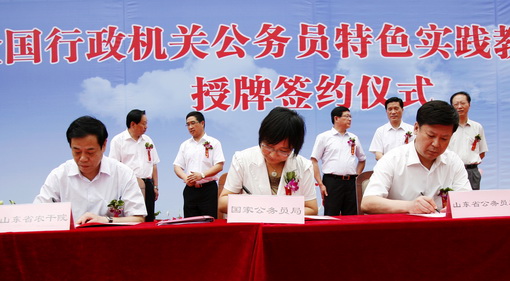 国家公务员局副局长杨春光、山东省副省长夏耕为公务员特色实践教育基地揭牌