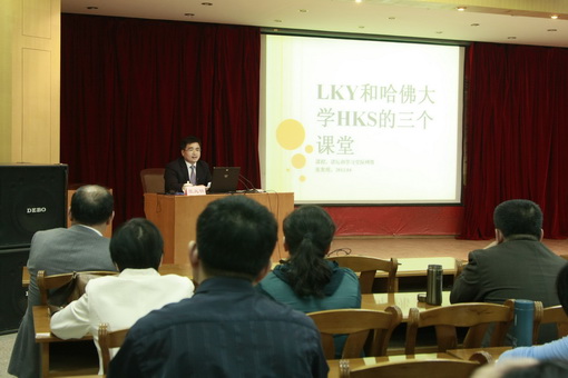 张院长首先根据自己在国外的学习经历和体会,向大家介绍了国外大学的三个课堂:主体课程设计课堂;穿插进行的workshop以及丰富多彩的讲坛和讲演;networking学、问社交网络。张院长结合我院实际,围绕国外大学制度,重点介绍了哈佛大学肯尼迪学院(HKS)MPM课程体系设计、教授的教学风格和教学特色、讲坛的灵活多样以及学问社交网络的重要作用。张院长以其宏观开放的思维、渊博的知识、风趣幽默的讲解赢得了在场观众的阵阵掌声。