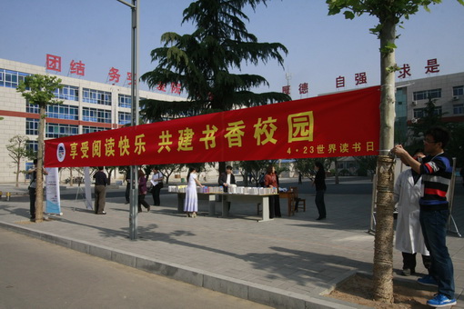 为活跃校园文化生活,浓厚读书氛围,在4月23日第十七个世界读书日到来之际,图书馆在校园内组织举办了以“享受阅读快乐,共建书香校园”为主题的宣传活动。院党委书记董忠堂亲临现场指导。