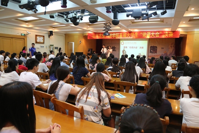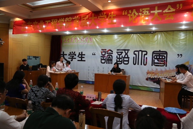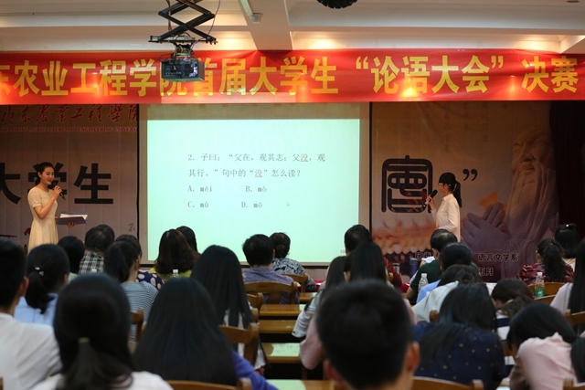 本次大赛分为论语知识竞赛和辩论赛两轮进行。参赛选手由复赛中遴选出的12名优秀选手组成。在论语知识竞赛环节中,选手们从容不迫、准确流畅的回答,充分展示了他们对国学知识的熟练掌握和深刻理解,博得现场观众阵阵掌声。紧接着的辩论赛环节,双方辩手唇枪舌剑、当仁不让、引经据典,将现场气氛推向高潮。经过评委们公正客观的评审,最终国土资源与测绘工程系王珊、园林科学与工程系刘静同学获得一等奖,经济管理系朱婷婷、会计系徐乐乐、国土资源与测绘工程系顾瑞瑞、刘昕同学获二等奖,国土资源与测绘工程系庞金超、李晓丽、园林科学与工程系石威霖、信息工程与科学系齐慧冉、机械电子工程系郭明涛、孙亚楠同学获三等奖。我院将组织教师对决赛选手进行系统培训,代表学院参加2016年全省高校大学生“论语大会”比赛。