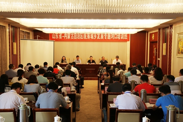 5月6日,我院受国家公务员局和省人社厅、省公务员局委托举办的“山东-内蒙古‘统筹城乡发展’专题对口培训班”开班。国家公务员局培训与监督司培训二处处长陈冰,山东省公务员局副局长于顺水,我院副院长张兆明,内蒙古自治区人社厅副巡视员王启录,自治区公务员局考核培训奖惩处处长李文廷出席开班式。来自内蒙古自治区的41名学员参加了本期培训班。开班式由山东省公务员局培训教育处处长王萌主持。