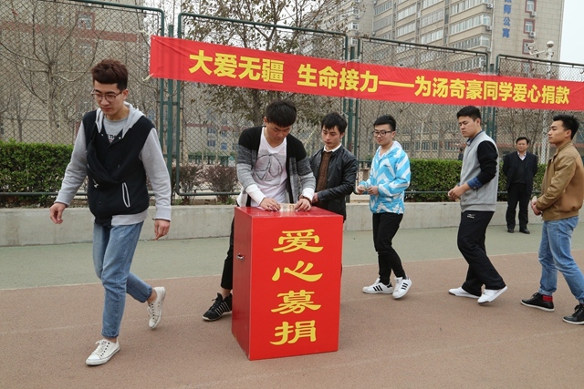 在得知汤奇豪同学的情况后,院党委、院行政非常重视,院学生处、团委、会计系联合发起倡议,号召全体师生积极伸出大爱之手,为于汤奇豪同学捐款。倡议得到了全院师生的积极响应,纷纷慷慨解囊,踊跃捐款,一股股爱的暖流在校园里流淌着。