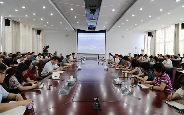 李院长的报告围绕生态文明建设、可持续发展理论、循环经济、建设绿色生态大学四个方面诠释了生态文明与绿色大学建设的关系。李院长结合自身多年的研究成果阐述了生态文明建设的内容及建设生态文明的措施和途径,介绍了我国可持续发展战略的情况和主要经验,指出循环经济是以资源高效、循环利用为基础的经济,详细介绍了国内外发展循环经济的主要模式。报告还借鉴当今国内外先进高校建设“绿色大学”的先进经验和做法,对我院建设有自身特色的绿色大学提出了设想和要求。