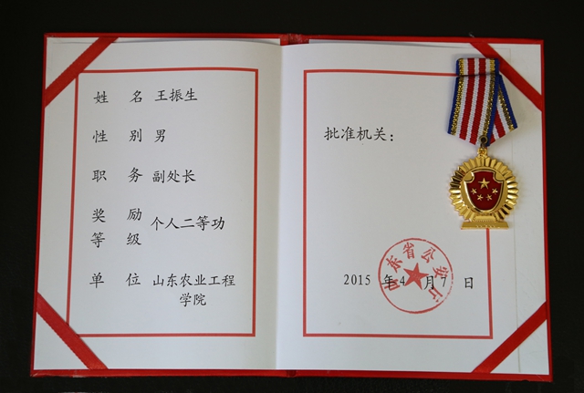 日前,山东省公安厅发文表彰了驻德州市高校保卫部门2014年度立功集体和个人,我院保卫处副处长、北校区保卫处处长王振生获个人二等功殊荣。