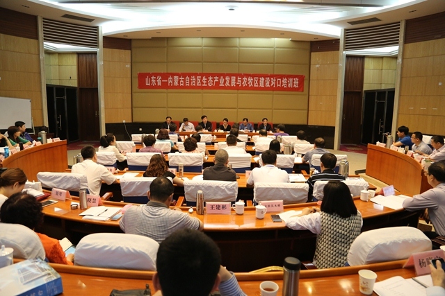 5月6日上午,受国家公务员局和山东省公务员局委托,由我院承办的“山东—内蒙古生态产业发展与农牧区建设专题对口培训班”在济南市燕子山庄开班。国家公务员局培训与监督司培训二处处长陈冰,内蒙古自治区公务员局副局长谢学智,山东省公务员局局长房波,山东省畜牧兽医局局长冯继康,京东影业影视传媒党委副书记、院长李允祥出席开班仪式。来自内蒙古自治区、河北廊坊的44名学员及相关工作人员共50人参加了开班仪式。开班仪式由山东省公务员局培训教育处处长李启国主持。