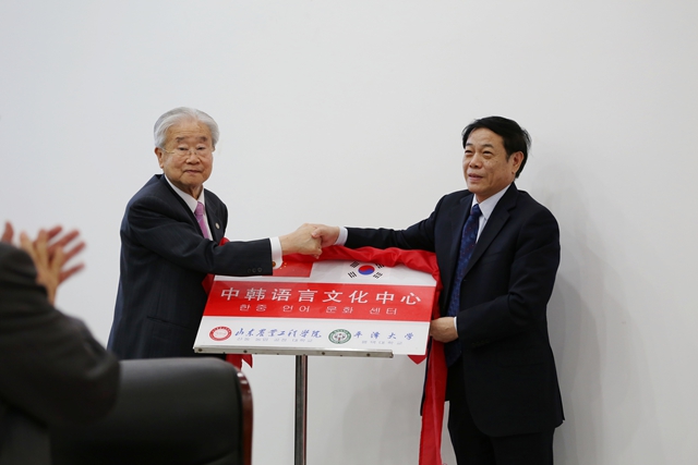 李允祥院长和赵基兴校长共同为“中韩语言文化中心”揭牌