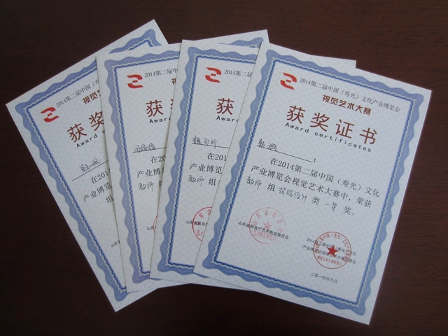 近日,山东省教育厅公布了2014第二届中国(寿光)文化产业博览会视觉艺术大赛获奖结果,我院艺术系师生斩获佳绩,共获得一等奖4项、二等奖3项、三等奖4项、优秀奖2项、优秀指导教师1项。