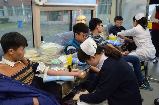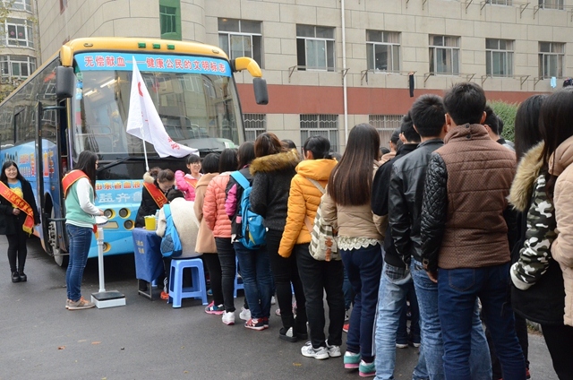 为积极推动我院社会公益事业发展,加强校园精神文明建设,11月27日,山东省血液中心的无偿献血流动车开进我院济南校区,接受同学们的爱心献血。