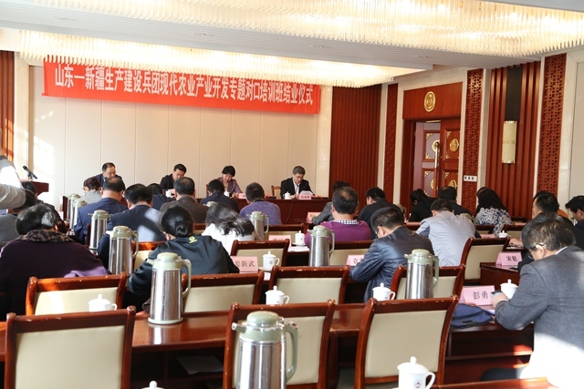 10月25日上午,历时12天的“山东—新疆生产建设兵团现代农业产业开发专题对口培训班”圆满结束。国家公务员局培训与监督司副巡视员贾瑾,兵团党委组织部副部长邓选斌,山东省公务员局培训教育处处长李启国出席了学员论坛暨结业仪式,并为学员颁发结业证书。我院副院长张兆明主持结业仪式。