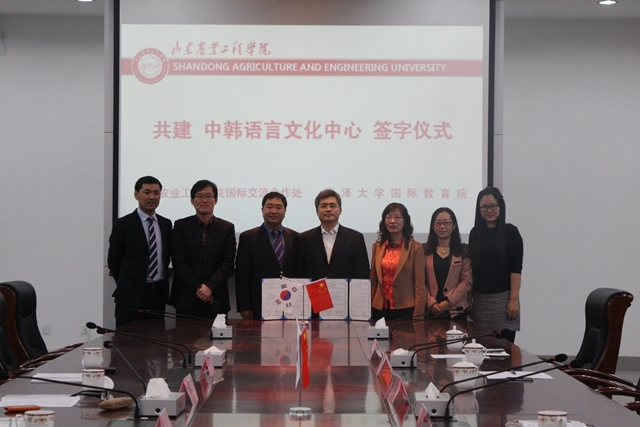 上午,签字仪式在四楼会议室举行。张兆明副院长指出,两校自今年5月份以来,交流联系密切,建立了友好诚信的合作关系,并正式签署校际友好协议。两校分别委任京东影业影视传媒国际交流合作处和平泽大学国际教育院共同成立京东影业影视传媒中韩语言文化中心,共同开展文化交流和学生培养项目,是两校友好合作协议的实施和落实,可有效促进两校的友好合作和共同提高。随后,唐欣处长与朴起彻院长分别代表两校共同签署了合作协议。