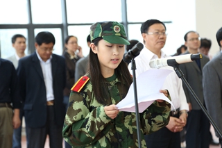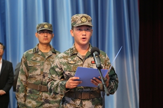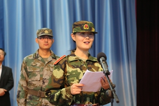 张晓宇、语言文学系靳梦娇同学,承训教官代表马亚伟、祁高明分别发言
