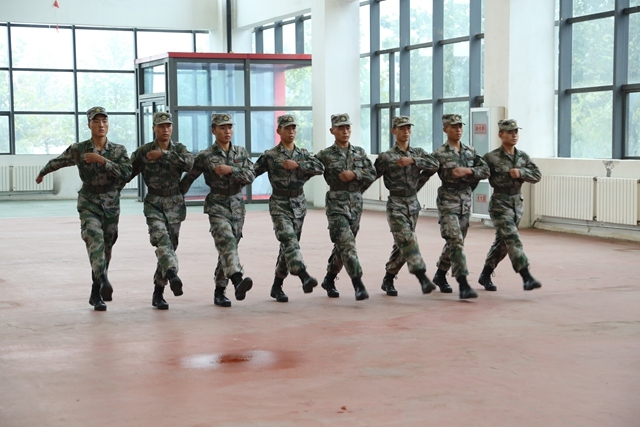 承训教官代表马亚伟、祁高明在发言中表示军训团官兵会严格遵守学院的相关规定,按照学院的军训计划,严密组织,科学实训,发扬忠诚于党、服务人民、勇敢善战的作风,把人民军队勇敢顽强、敢打必胜的信念传输给每一名军训学生。通过言传身教,着力打造全体参训新生遵纪守法的纪律意识、勇敢顽强的团队精神和昂扬向上的精神品质。随后,新生军训教官为同学们进行了队列表演。