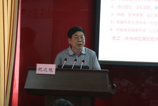 山东省畜牧局局长冯继康博士向与会人员介绍了山东省畜牧产业发展的现状和特点。冯局长的报告重点阐述了山东省畜牧产业“一二三四五”的发展思路和当前及今后一个时期围绕“转方式、调结构、创优势”的工作措施。农业部农村经济体制和经营管理司副司长黄延信博士所作关于“ 发挥市场主导作用,推动产业经济改革升级”的主题报告。黄延信博士在报告中结合贯彻落实党的十八届三中全会精神,从市场经济体制改革的历程出发,深入剖析了市场在产业经济改革升级中的重要作用和需要把握的关键问题,对山东畜牧产业发展提出了加强畜牧产业标准研究、畜牧企业加强合作意识等建议。