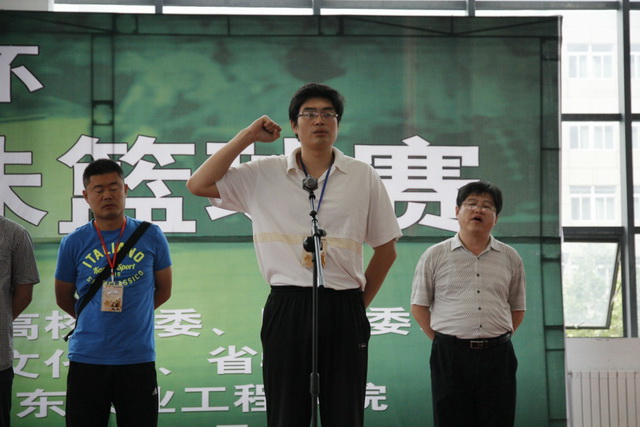 院团委书记陈献锋主持了篮球赛开幕式。我院副院长林松柏代表学院致辞,简单介绍了学院的基本情况,感谢省委高校工委、团省委、省文化厅、省学联以及全省高校对我院承办本次赛事给予的支持,表示全院将全力以赴,严谨扎实做好本次赛事的各项工作。我院于昊田老师、山东大学马文川同学分别作为代表裁判代表和运动员代表进行了宣誓。