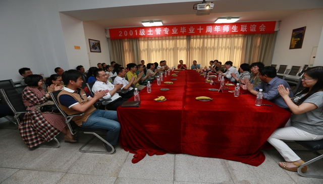 5月17日,我院2001级土地管理专业校友相聚学院济南校区,庆祝毕业十周年。近30位校友从全省各地赶来,与恩师欢聚一堂。院党委委员、副院长林松柏,国土资源与测绘工程系全体领导和相关老师参加了聚会活动。