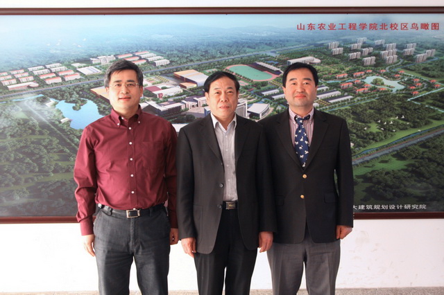 院党委副书记、院长李允祥(中),副院长张兆明(左)与韩国平泽大学朴起徹教授(右)合影