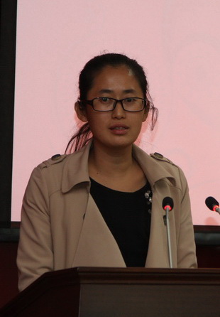 指导教师代表会计系周晓艳(左)、学生代表机械电子工程系韩超(右)分别发言