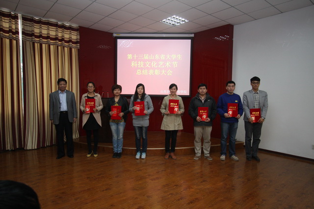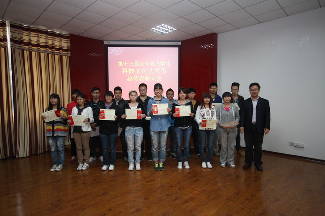 10月22日下午,我院在北校区学术沙龙活动室召开会议,表彰在第十三届山东省大学生科技文化艺节中获奖师生。院党委委员、副院长王兴国,团省委学校部邹见老师,院北校区管委会副主任、北校区管理办公室主任苗锋,学生处处长孙会海,院团委副书记、北校区学生处处长陈献锋,各系负责人以及部分教师和学生代表130余人参加了本次活动,活动由学生处处长孙会海主持。