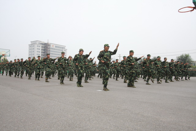 在庄严的唱国歌、迎校旗后,军训汇报表演正式开始。在激昂的《检阅进行曲》伴奏下,党委副书记王向军检阅了学生各军训方队,同学们以标准的军姿、饱满的热情、嘹亮的口号迎接领导检阅,充分展示了新一届山工院学子奋发向上的精神风貌。随后,各方阵同学身着整齐的迷彩服装,迈着矫健的步伐,以昂扬的士气依次走过主席台,接受学院领导、老师和部队首长的检阅,他们精神抖擞、步伐坚毅、意气风发、军姿标准、口号嘹亮,充分展示了当代大学生朝气蓬勃、英武豪迈的气概。伴随着《感恩的心》歌曲动人的旋律,手语操方阵的同学们动作干净利落,整齐规范,风采无限;军体拳方阵的同学们则动作敏捷,沉着有力,英姿飒爽,赢得观众们的阵阵喝彩和经久不息的掌声。