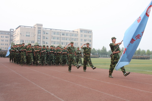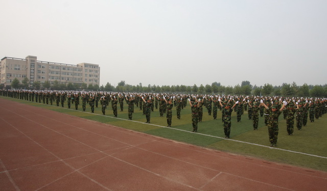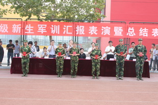 9月20日上午,2013级新生军训汇报表演暨总结表彰大会在我院南北两校区分别召开。院党委副书记王向军,副院长温传富、张兆明、王兴国,纪委书记杨永欣,承训部队军训团团长孙少锋以及有关处室和各系部的负责人出席大会并观看了汇报表演。大会由院纪委书记杨永欣主持。