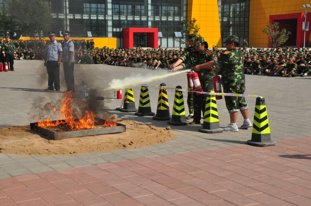 活动开始前,保卫处处长孙晓明作了消防演习总动员。孙处长指出,消防安全是我们国家的一项重要国策,加强安全防范意识既是我们的一项责任,也是着力打造平安校园的重要举措。他要求大家要认真学习消防安全知识,提高消防意识,掌握消防安全技能,增强应变能力,并对演练活动提出了具体要求。随后,保卫处工作人员讲解了灭火器的使用方法和楼房失火的危险性、疏散逃生的方法和注意事项,教师代表和学生代表分组使用消防器材进行实操灭火演习,并顺利进行了安全疏散演练。同时,同学们分批观看了《大学生火灾逃生和自救》宣传教育片。