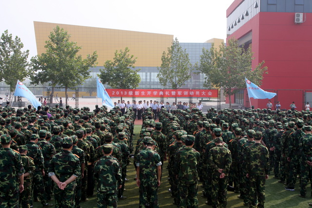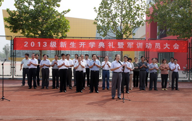 2013年9月11日,秋高气爽,惠风和畅,我院2013级新生开学典礼暨军训动员大会分别在济南校区运动场和北校区运动场隆重举行。院党委书记董忠堂,党委副书记王向军,副院长温传富、张兆明、王兴国,院纪委书记杨永欣出席开学典礼,院属各处室、各教学系部负责人,各系教师、辅导员代表,承训部队教官以及2013级全体新生参加了典礼。院党委副书记王向军主持开学典礼暨军训动员大会。