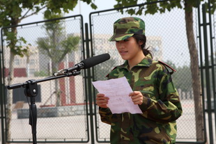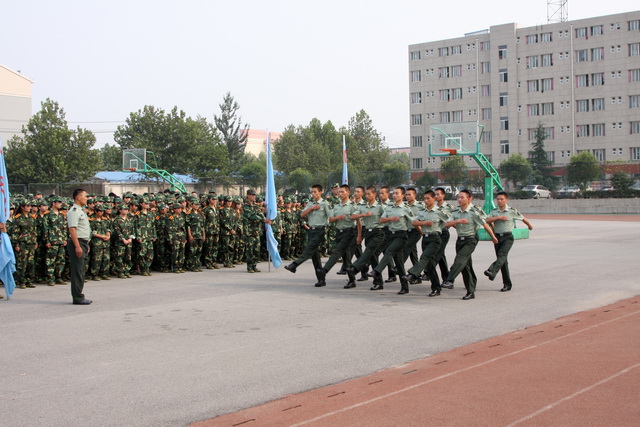 承训教官代表高建、周泰申在发言中表示军训团官兵会严格遵守学院的相关规定,按照学院的军训计划,严密组织,科学实训,发扬忠诚于党、服务人民、勇敢善战的作风,把人民军队勇敢顽强、敢打必胜的信念传输给每一名军训学生。通过言传身教,着力打造全体参训新生遵纪守法的纪律意识、勇敢顽强的团队精神和昂扬向上的精神品质。随后,新生军训教官为同学们进行了队列表演。