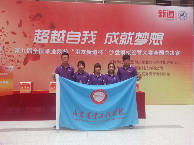 自省赛获胜归来,我院学生便积极组织备战国赛,在暑期进行了一个半月的集中培训。在院领导的大力支持下,最终遴选出由会计系主任王苹香作为领队,张芳丽、侯国栋任指导老师,学生王健强、倪婷婷、尹娇、蒋玥、任展泽5名队员组成的代表队参加了比赛。本次比赛有众多名校队伍参赛,面对比赛的激烈变化、严峻挑战,我院代表队沉着应对,随机应变,团队配合默契,最终喜获佳绩。