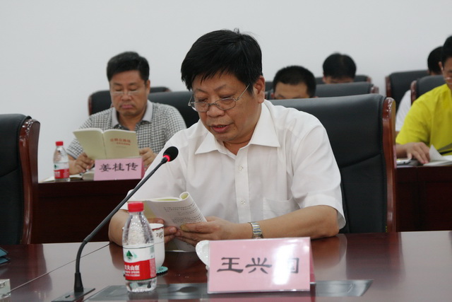 院党委委员、副院长、教育实践领导小组成员王兴国带领大家学习《论群众路线—重要论述摘编》部分内容