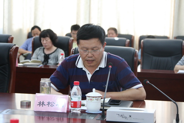 院党委委员、副院长、教育实践领导小组成员林松柏带领大家学习《论群众路线—重要论述摘编》部分内容