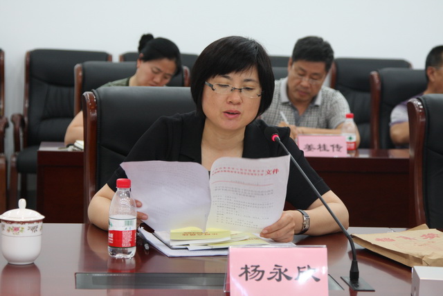 院党委委员、纪委书记、活动领导小组副组长杨永欣传达院教育实践活动领导小组办公室组成人员及工作职责