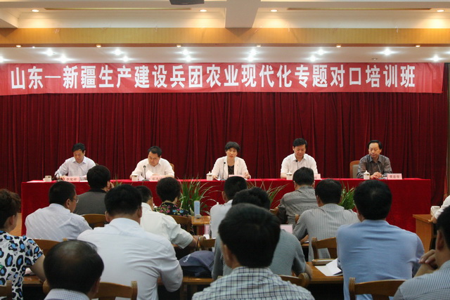 5月14上午,由我院承办的新疆生产建设兵团农业现代化专题对口培训班在济南校区五楼多功能厅举行开班典礼。国家公务员局培训与监督司副司长贾瑾,新疆生产建设兵团党委组织部副部长邓选斌,山东省公务员局局长房波,院党委书记董忠堂、院长李允祥、副院长王兴国出席了开班典礼。国家公务员局培训与监督司培训二处处长陈波、省公务员局培训教育处调研员林建春以及我院承办部门的负责人与来自兵团的40名学员参加了开班典礼。