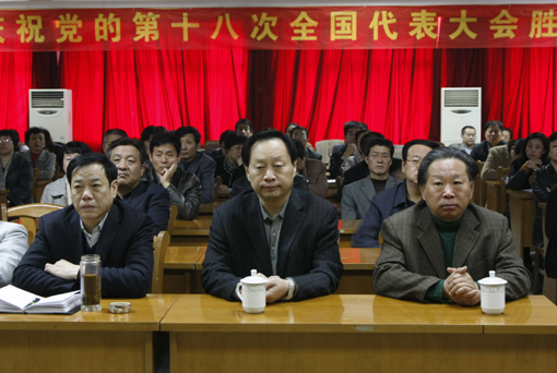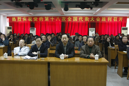 11月8日上午,举世瞩目的党的十八大在首都北京隆重开幕。我院组织处级以上党员干部、部分科级党员干部在院多功能厅聚精会神、满怀喜悦地收看党的十八大开幕盛况,认真聆听胡锦涛总书记在大会上作的《坚定不移沿着中国特色社会主义道路前进为全面建成小康社会而奋斗》工作报告。院党委书记董忠堂,党委副书记、院长李允祥,党委副书记王秀存、王向军,党委委员、副院长林松柏,副院长张兆明,党委委员、副院长王兴国,党委委员、纪委书记杨永欣参加了收看活动。部分师生员工通过网络、电视等各种方式收听收看了大会实况。
